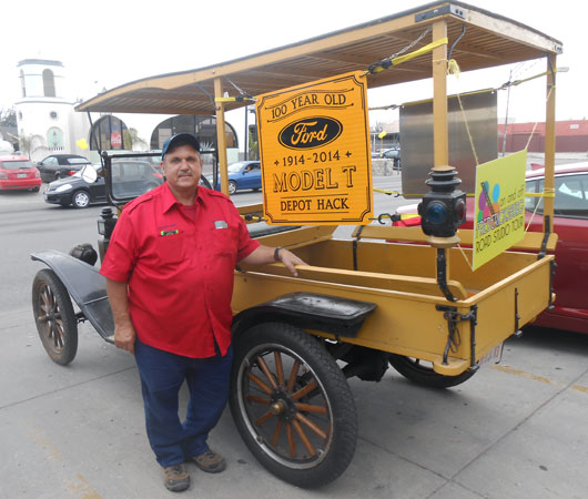 Anton Hajek with his 100 year old 1914 Ford Model T depot hack at the 2014 Shriner Car Show