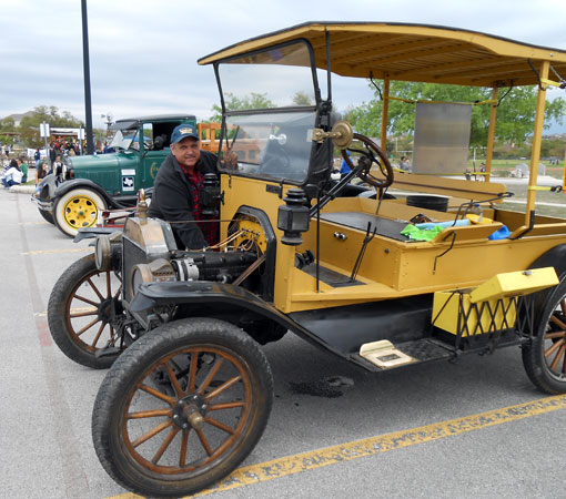 Anton Hajek and his 1914 Ford Model T depot hack during the 8th Annual San Antonio Ford Model T Show, March 2014