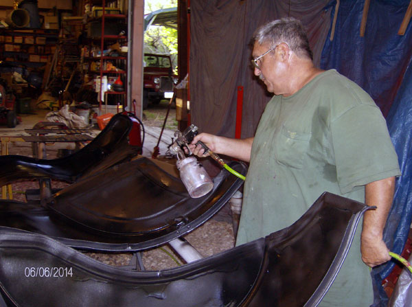 Anton Hajek's painting the fenders of his 1919 Model T doctor's coupe, June 2014