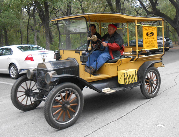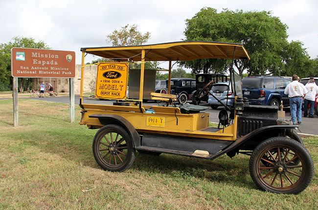 Anton Hajek's 100 year old 1914 Ford Model T depot hack at the 2014 tour of San Antonio's historic missions