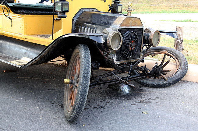 Anton Hajek adjusting his 1914 Ford Model T depot hack at the Tejeda Middle School History Faire, April 2014