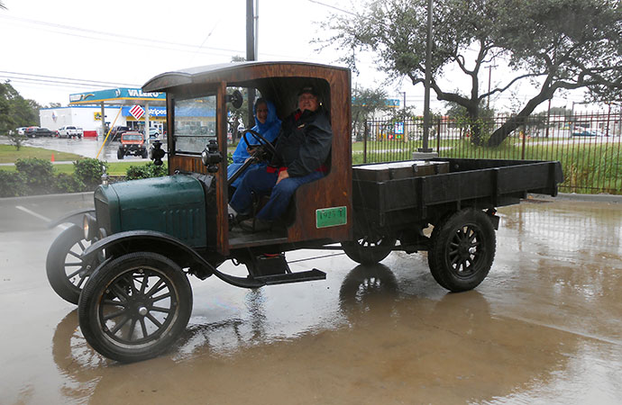 Anton and Mary Ann Hajek in their 1925 Ford Model TT truck during a Texas coast tour based in Rockport, November 2015