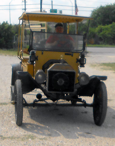 Anton Hajek in his 1914 Model T depot hack at a club visit to a retirement home in Boerne, Texas