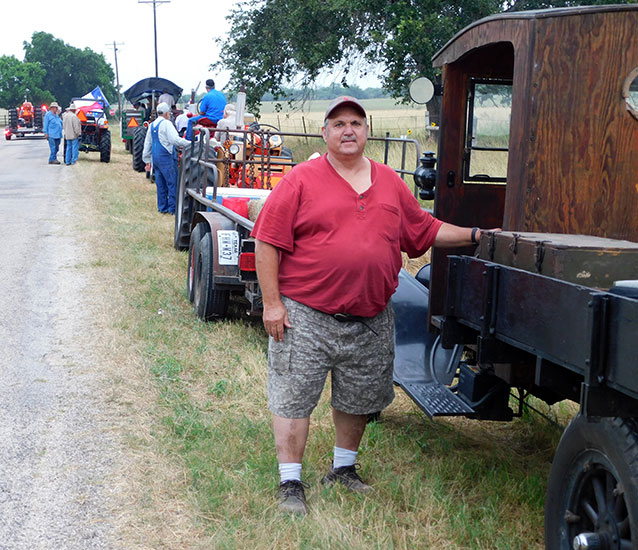 Anton Hajek with his 1925 Ford Model TT truck during an agricultural tractor drive in the Hill Country, May 2017