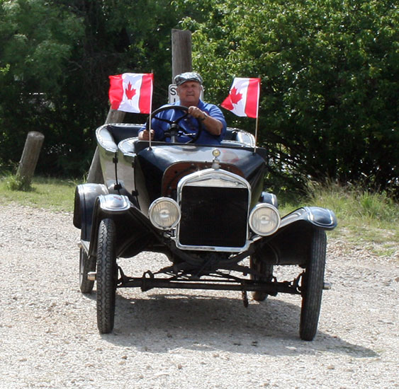 Anton Hajek in his 1914 Model T depot hack during a Median County tour
