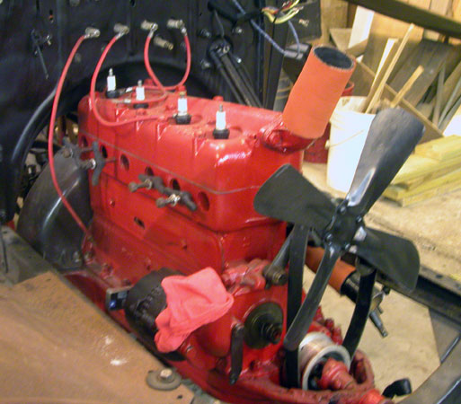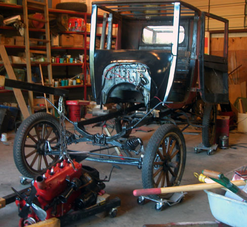 Engine re-installed in Anton Hajek's 1919 Model T doctor's coupe, February 2012