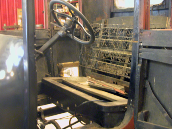 Interior of Anton Hajek's 1919 Model T doctor's coupe stripped to the bone