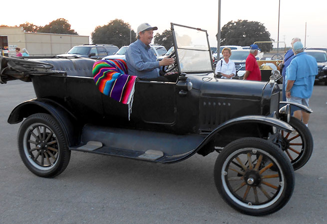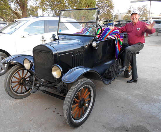 Bill Dillard with his 1924 Ford Model T touring car during the 2015 Texas T party based in Uvalde