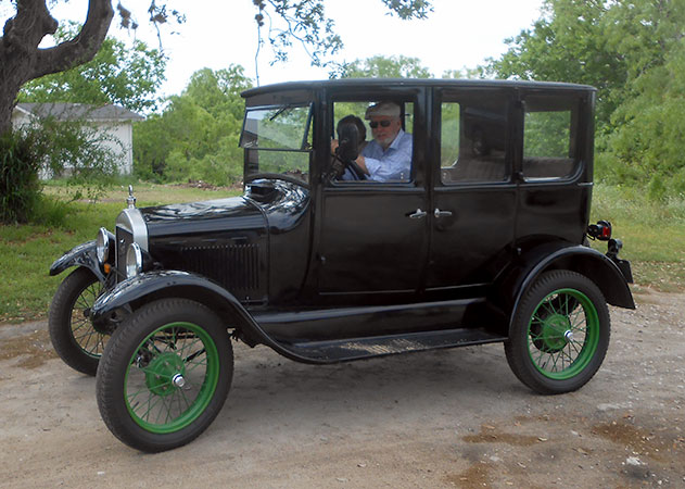 Bob Abbey with his 1927 Ford Model T Fordor at WOodlawn Lake, San Antonio, February 2016