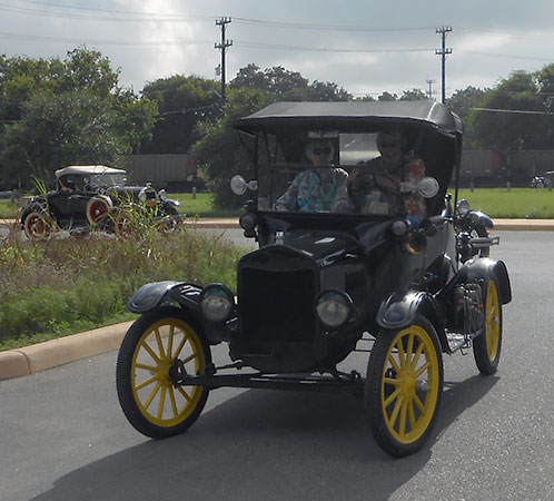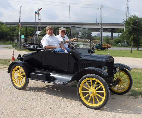 Daniel Bratcher riding with Bob Abbey in Bob's 1917 Ford Model T roadster at the San Antonio Ford Model T Show, May 2016