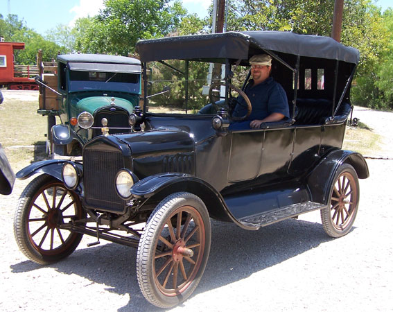 Clint Bitterly driving the family 1917 Ford Model T touring car at the San Antonio Ford Model T show held at the Texas Transportation Museum