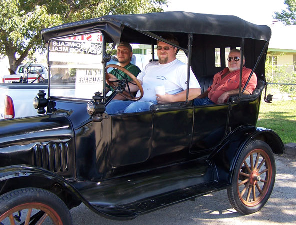 Clint enjoys all kinds of vehicles. He has an old VW bug and an army deuce and a half truck plus an old 1940s Ford tractor that he uses for yard work and other chores. He and his dad also help a couple of museum's with their Model Ts, including ambulances at the AMMED museum at Fort Sam Houston and the Texas Air Museum at Stinson. Clint has works on a 1924 fire truck belonging to the Texas Transportation Museum. Both he and his dad have a very positive attitude towards life. Their willingness to participate and offer assistance whenever possible is what makes the "T Fords of Texas" such a great club to be a part of.