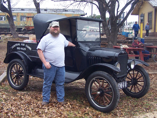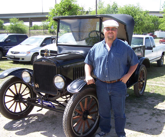 Clint Bitterly and 1923 Ford Model T runabout at the 8th Annual San Antonio Ford Model T Show, March 2014