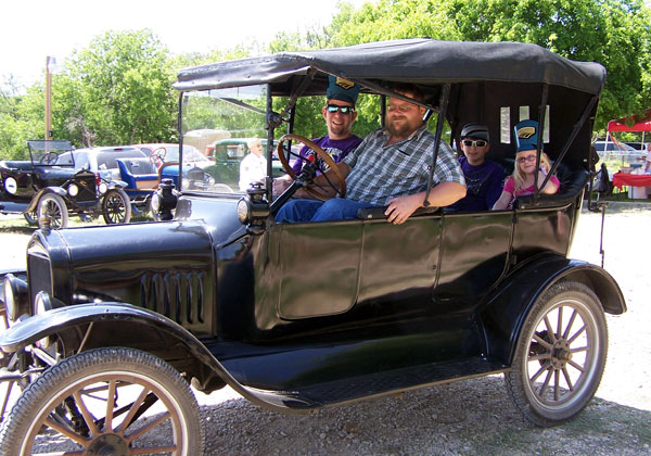 Clint Bitterly giving rides in the family 1917 Ford Model T touring car at the 2013 San Antonio Ford Model T Show