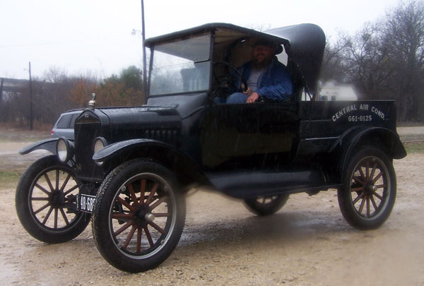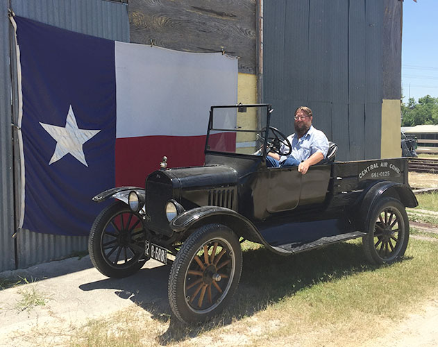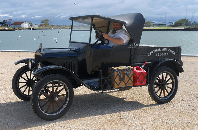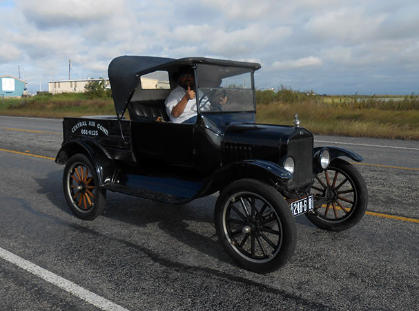 Clint Bitterly in his 1923 Ford Model T runabout during a Texas coast tour, November 2015