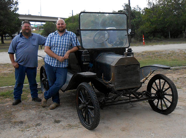 Clint and Jason Bitterly with their father's 1914 Ford Model T during the 2015 San Antonio Ford Model T Show