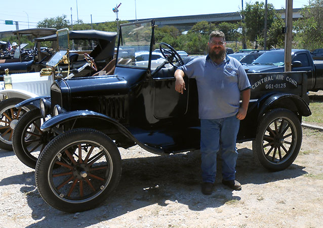 Clint Bitterly with his 1923 Ford Model T runabout during the 2015 San Antonio Ford Model T Show