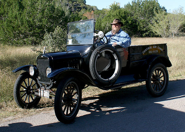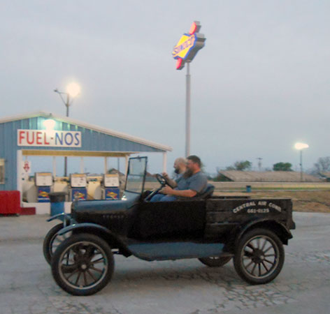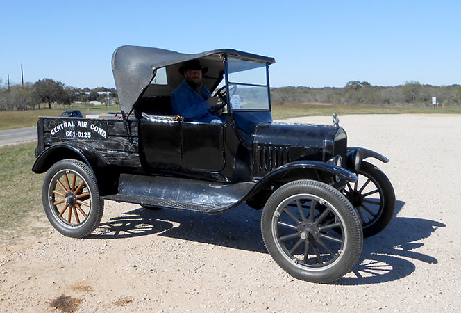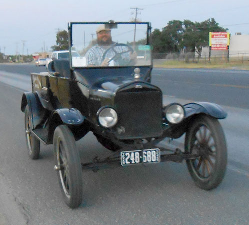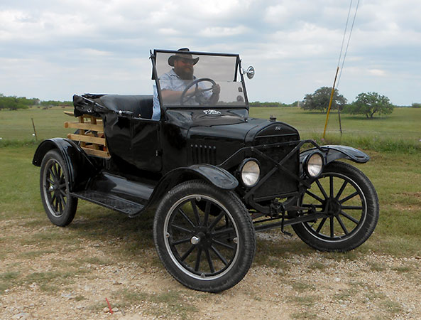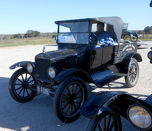 Clint Bitterly in his 1923 Ford Model T runabout at a TFOT tour in Uvalde, Texas