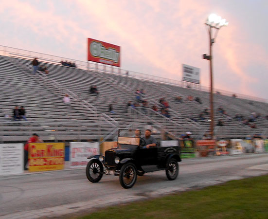 Clint Bitterly and brother in his 1923 Ford Model T runabout at the San Antonio Speedway drag strip, March 2016