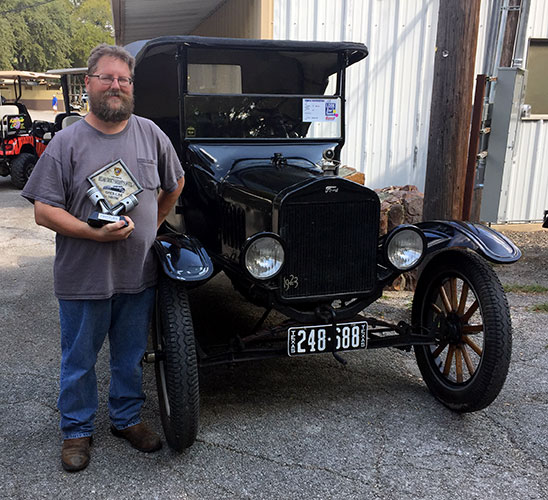 Clint Bitterly taking home a prize for his 1923 Ford Model T at the 2017 Bexar County Sheriff's Department car show, September 2017