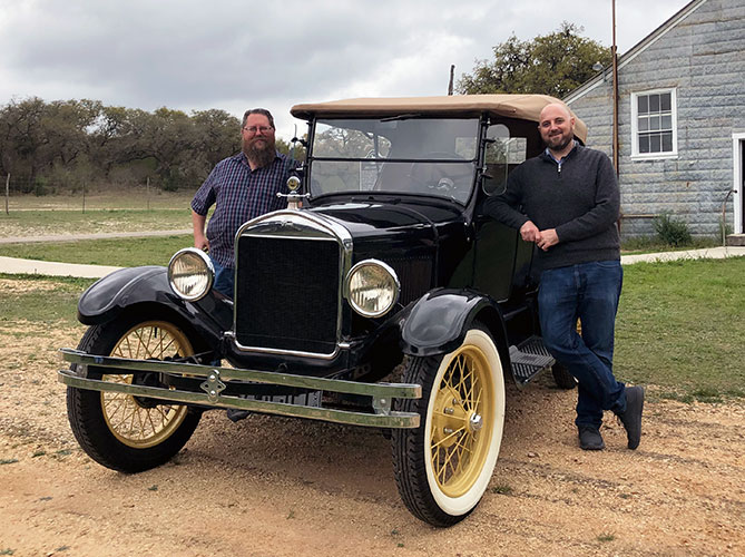Clint Bitterly with brother Jason with their father's father's 1926 Ford Model T during the March 2019 Hill County TT tour
