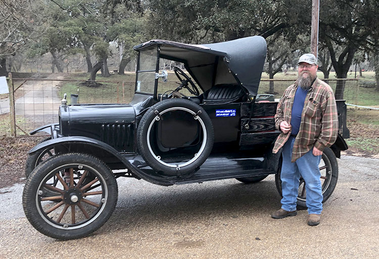 Clint Bitterly with his 1923 Ford Model T during the Hill Country tour, February 2021