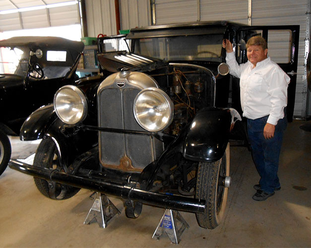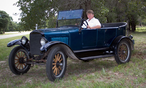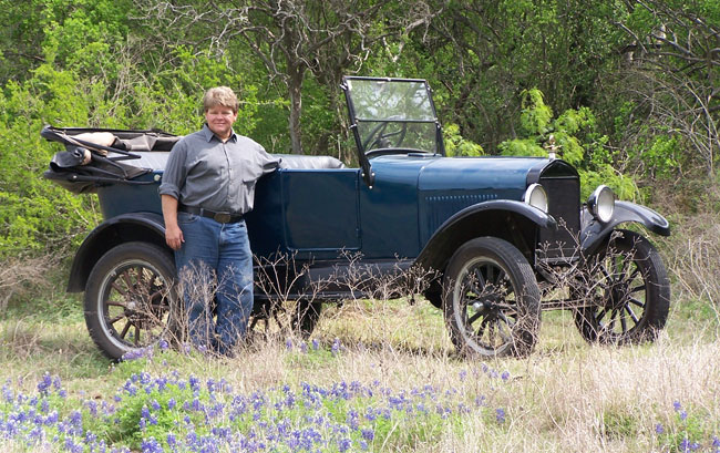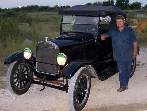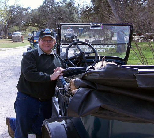 Daniel Bratcher was president of the T Fords of Texas between 2005 and 2015. He was introduced to Model Ts by his godfather, Pete Reinthaler at the age of 11. At 14, he was deemed old enough to visit him in Houston by himself, traveling by Greyhound bus. Pete would take him to swap meets and to the annual "Texas T Party." It was not until his early 30s that he embarked upon having a Model T of his own, when Pete gave him the frame and body - in parts, for a 1926 open tourer. Completing the project actually took eleven years. Daniels's partner in crime in this endeavor was Mike Mackechney. The two had met in the 6th grade. They played in the Lee High School band together and have stayed the best of friends ever since.