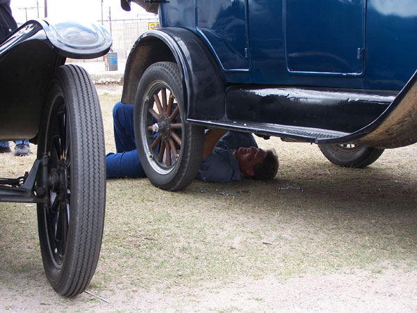 Daniel Bratcher working on a friend's Ford Model T touring car during the 2015 Texas T Party based in Uvalde, October 2015