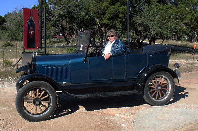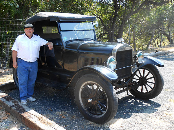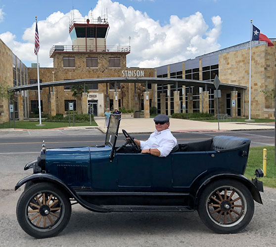 Daniel Bratcher in his 1926 Ford Model T at Stinson Airport during the 2018 Wine Tour, which he organized.