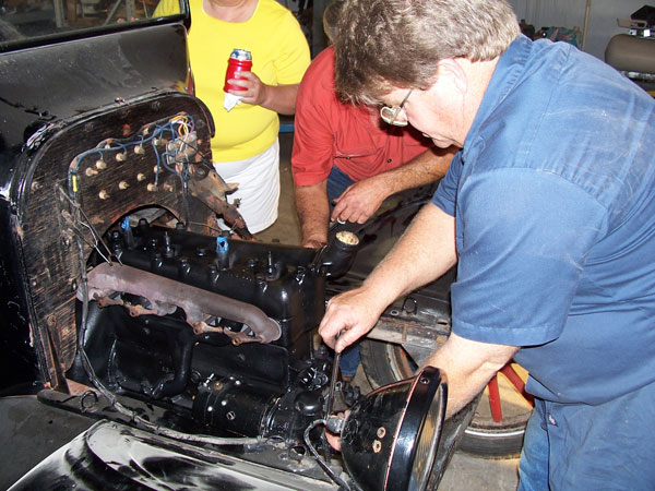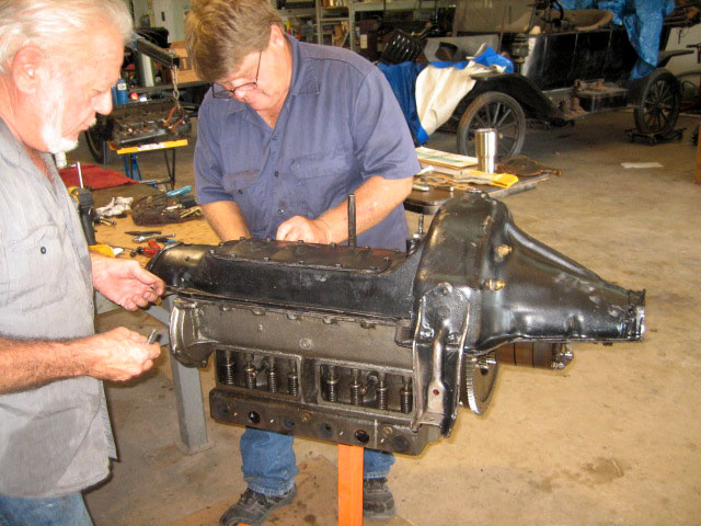 Daniel Bratcher qorking on Ronnie Bitterly's 1917 T engine, September 2016