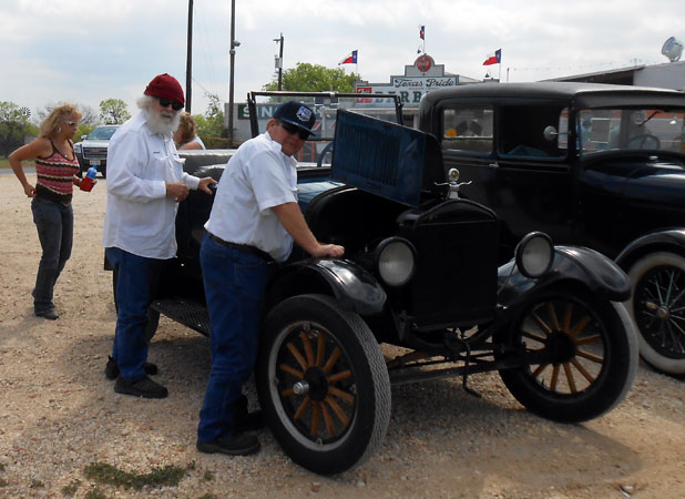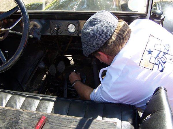 Daniel Bratcher adjusting "Old Blue," his 1926 Ford Model T touring car, during the T Fords of Texa" spring tour, April 2014