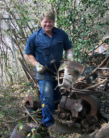 Daniel Bratcher rummaging for usable Model T parts at a soon to be closed scrap yard in San Antonio, January 2013