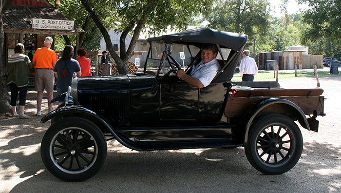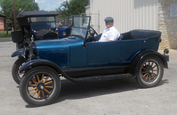 Daniel Bratcher in his 1926 Ford Model T on a cruise of the New Braunfels area, August 2014