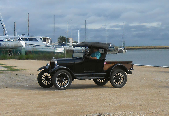 Daniel Bratcher in his 1926 Ford Model T runabout during his 2015 Texas coast tour based in Rockport, November 2015