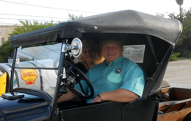Daniel Bratcher and Tammy Mackechney in his 1926 Ford Model T during the 2014 Texas T Party, in San Angelo