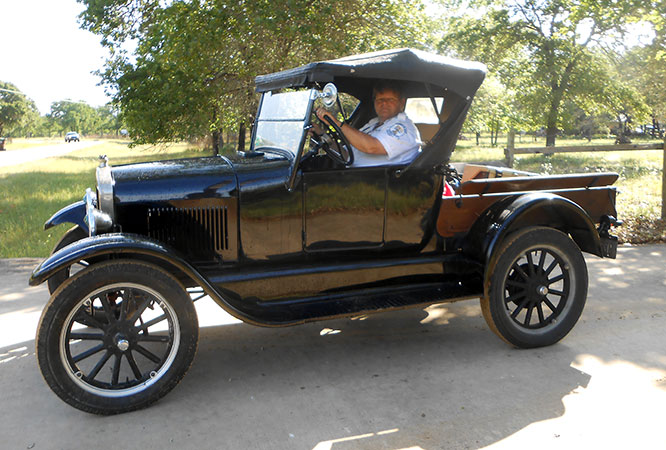 Daniel Bratcher with his 1926 Ford Model T runabout during the 2015 Texas T Party based in Uvalde, October 2015
