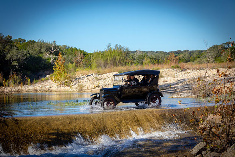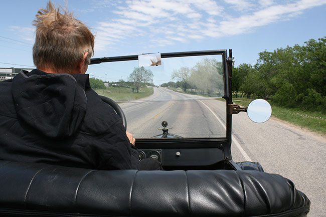 Dave Tagert driving a borrowed Ford Model T during the Texas Hill Country tour, February 2021