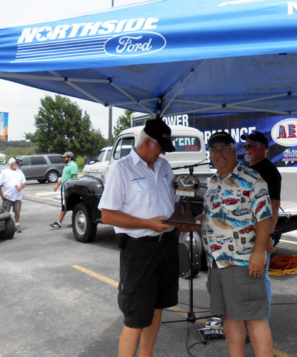 DuWayne Headrick winning a prize for his 1926 Ford Model TT truck at the "Dare To Love" charity car show at Northside Ford, June 2014