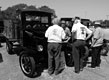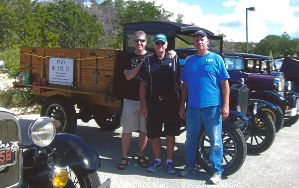 DuWayne Headrick, center, wih hs brother-in-law and son-in-law with his 1926 Ford Model TT truck at a church Pumpkin Festival, October 2014