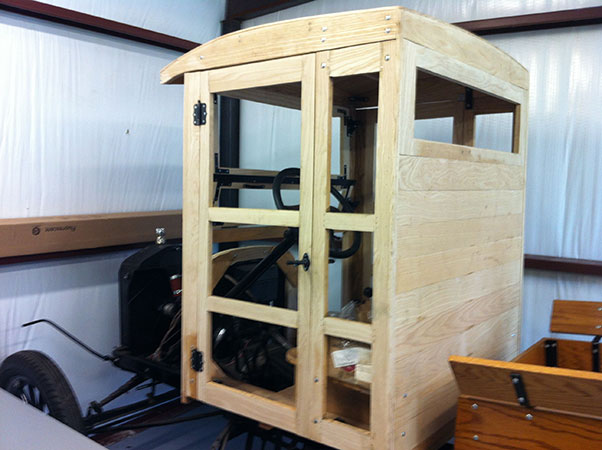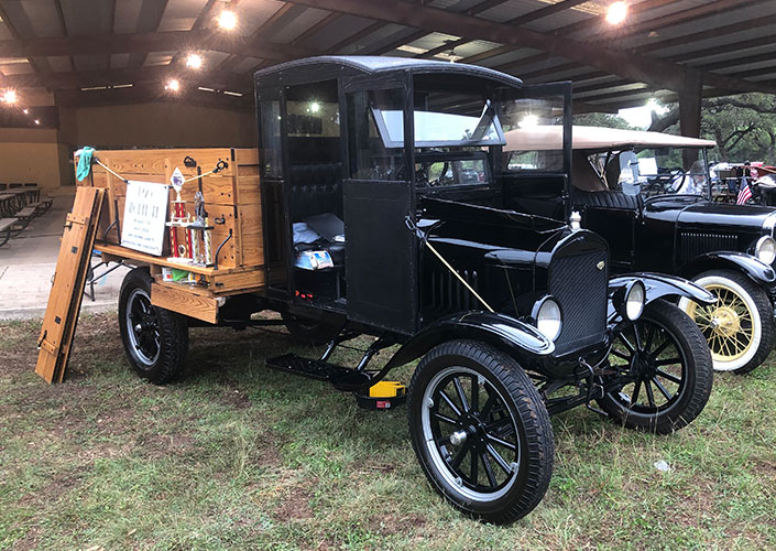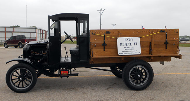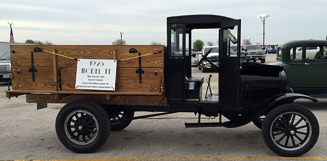 Ross Lilleker of College Station began to restore this 1926 closed cab TT in 2010. Despite efforts to save the original wooden cab and bed it was all too far gone. The new cab was built to be as similar as possible to the original. All of the rest of the vehicle is original except a few hoses and spark plugs. A newer differential was fitted to allow the truck to be driven a little faster than the original top speed of 22 MPH.