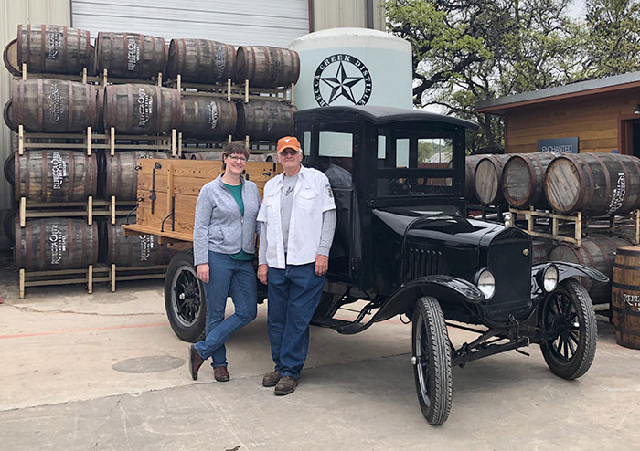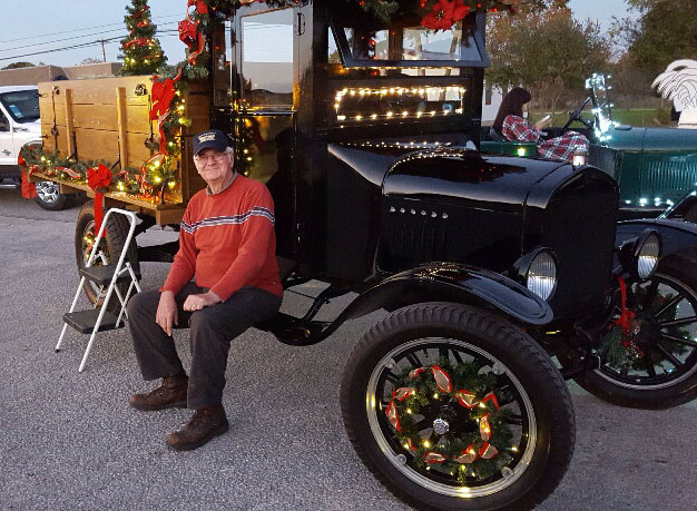 Connie and DuWayne Headrick with their 1926 Ford Model TT just before the Boerne Christmas Parade, December 2018