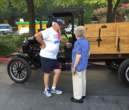 DuWayne Headrick discussing the finer points of his 1926 Ford Model TT at a Father's Day event, June 2016