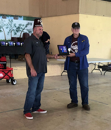 DuWayne Headrick accepting an award for his 1926 Ford Model TT during the 2019 Shriner Car Show, October 2019