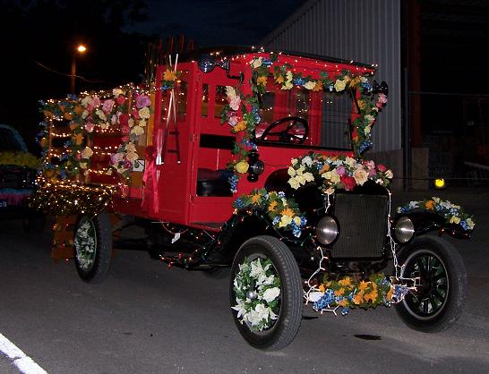 Joey Groff's illuminated Ford Model T truck at the "Flambea" parade