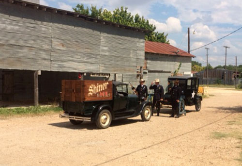 1919 Ford Model T centerdoor and a Ford Model A pick-up belonging to George "Sonny" House in a Shiner Beer commercial, August 2017