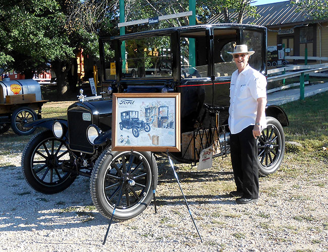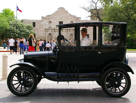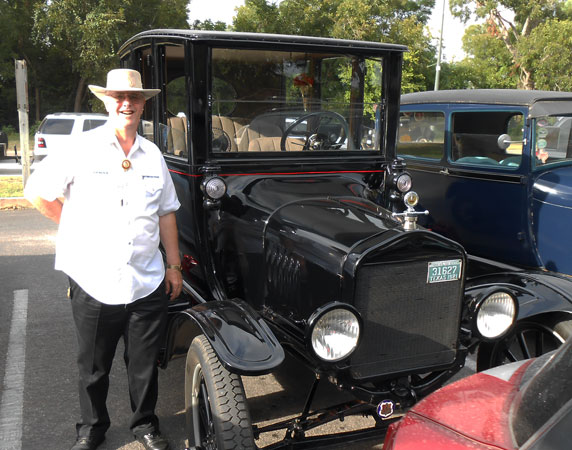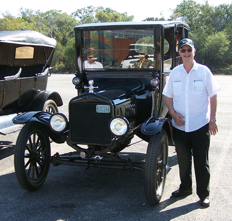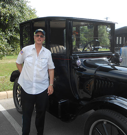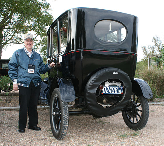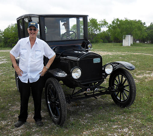 George Wilson and his 1921 Ford Model T Center Door during the August 2013 tour of San Antonio's historic Missions