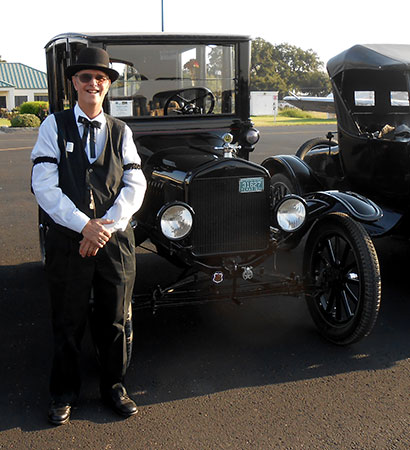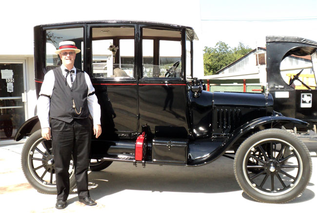 George Wilson and his 1921 Ford Model T Center Door at a Roaring 20s fashion shoot, March 2012