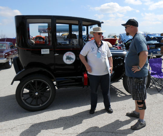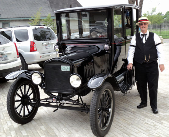 George Wilson and 1921 Ford Model T center door sedan at the 2014 Texas T Party in San Angelo