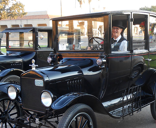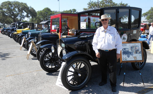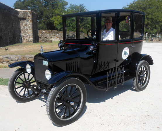 George Wilson and 1921 Ford Model T center door sedan at the 2014 tour of San Antonio's historic missions