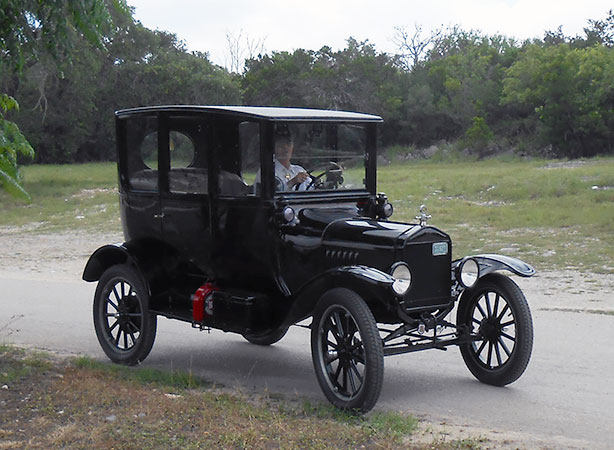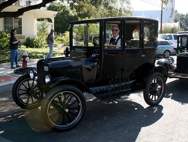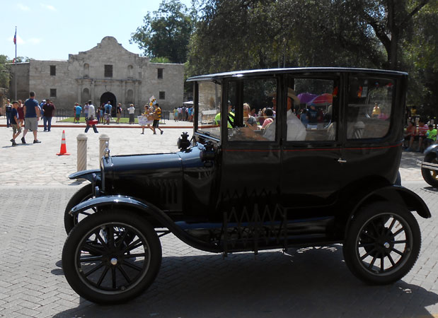George Wilson's 1921 Ford Model T center door sedan at the 2014 tour of San Antonio's historic missions